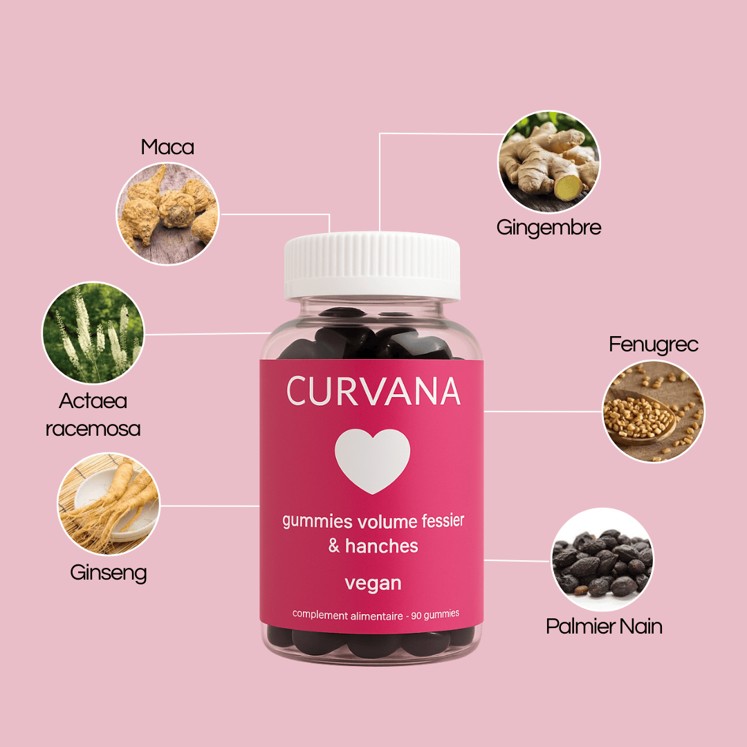 The power of our Curvana gummies lies in their exclusive combination of targeted plant-based actives, known to shape, firm, and naturally reveal your curves.